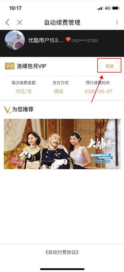 优酷播放器怎么关闭自动续费?