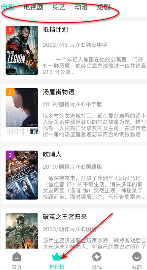 点击排行榜,有不同类型影视资源的排行哦
