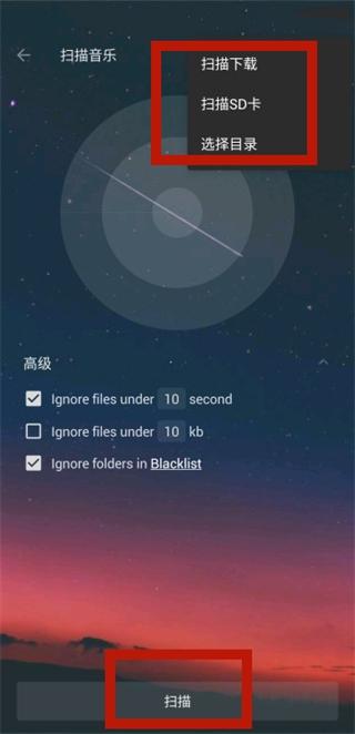 4、还可以选择扫描的指定位置,选择好后只需点击扫描即可将音乐添加至播放列表。
